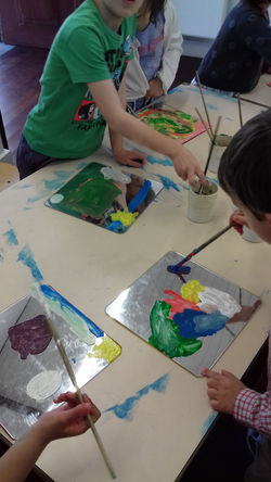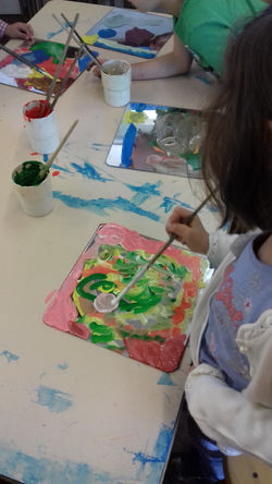 Vamo-nos lá preparar para a pintura procurar! Por entre tintas e papéis quase não vamos precisar dos pincéis! Umas esponjas, uns tecidos, espelhos?!… Ah!! E com carimbos e stencils! Tudo nos pode ajudar, só nos falta começar!
